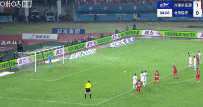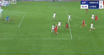 第40分钟,钟义浩补射发生折射破门,河南1-0领先国安!