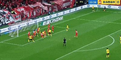 第43分钟,加布里埃尔头球攻门,李昊飞身扑出横梁。